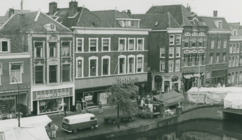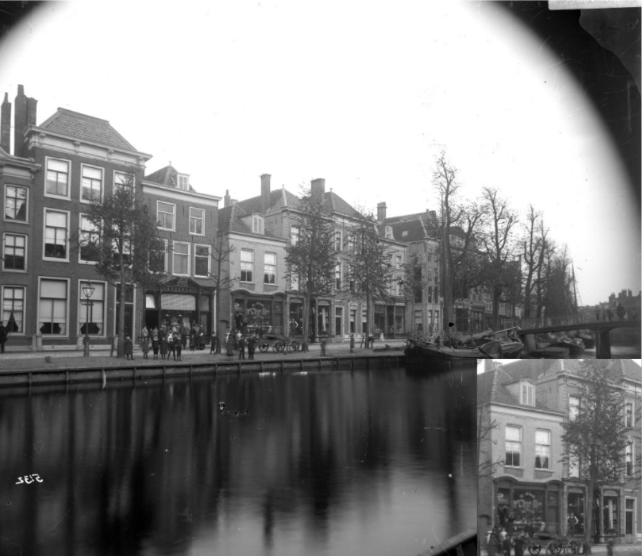 Deze prachtige foto geeft een uniek beeld van een 19e eeuwse Nieuwe Rijn, meer in het specifiek ‘onze’ panden aan de Nieuwe Rijn 45, 46, 47 en 48. Let hierbij eens op de bijzondere gevels van de Nieuwe Rijn 45 en 46!